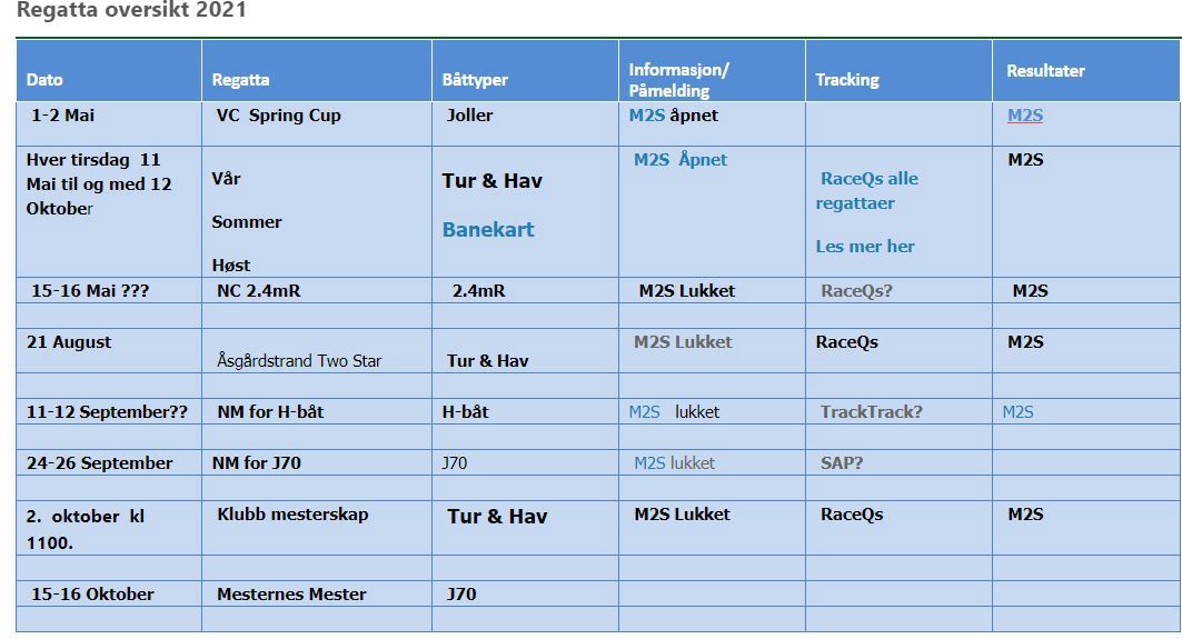 Regatta oversikt